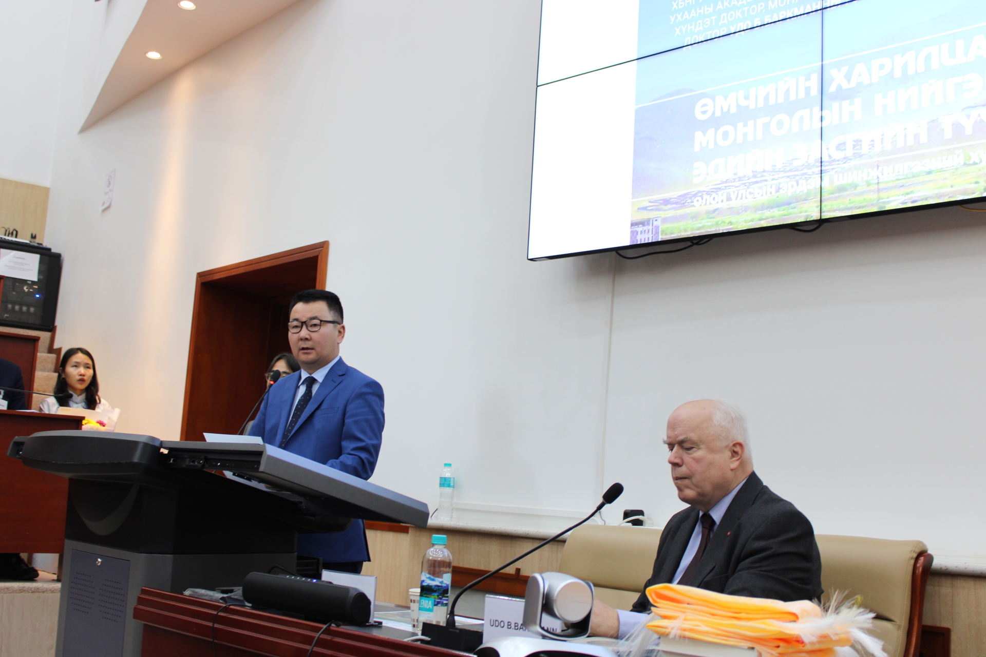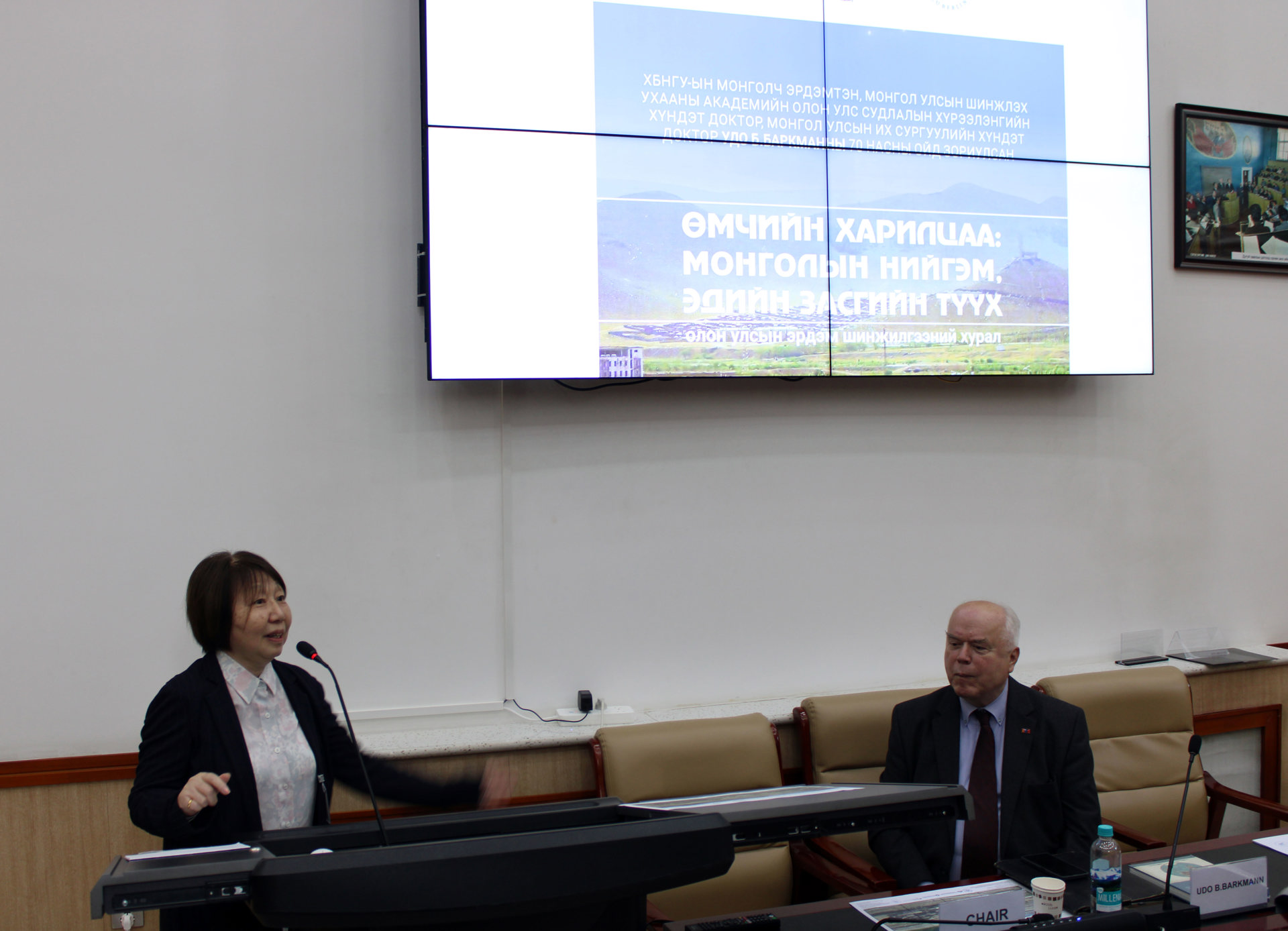 Хурлын үндсэн илтгэлийг “Монгол судлалд шинэ судалгааны хэтийн төлөв шаардлагатай байна: Монголын нийгмийн хөгжилд өмчийн үүрэг (1691-1911)” сэдвээр монголч эрдэмтэн Удо Б. Баркманн хэлэлцүүлэв.